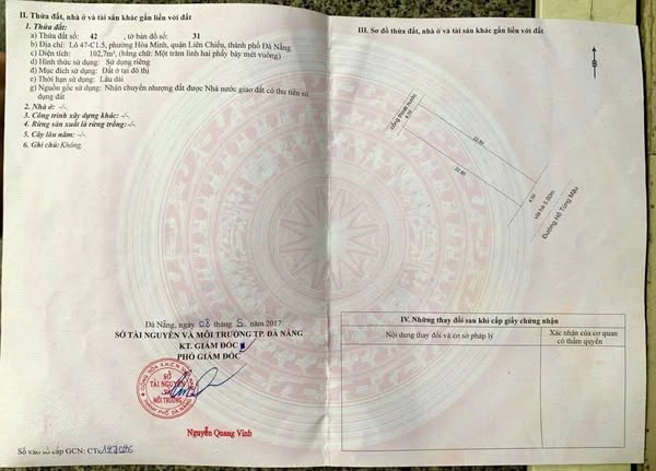 102m²Bán đất mặt tiền Hồ Tùng Mậu- Phường hoà minh- Đà nẵng .